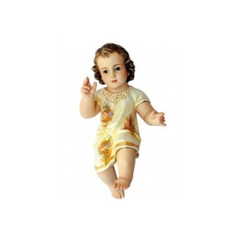 Baby Jesus of 40 cm with glass eyes in pasteboard wood decorated by Christian Art. Model A615 in 2N-Fine decoration.