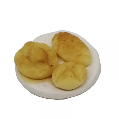 Plato Modelo F: Pan con quesos . Medidas Plato 5 mm altura y 3.6 cm Ø .