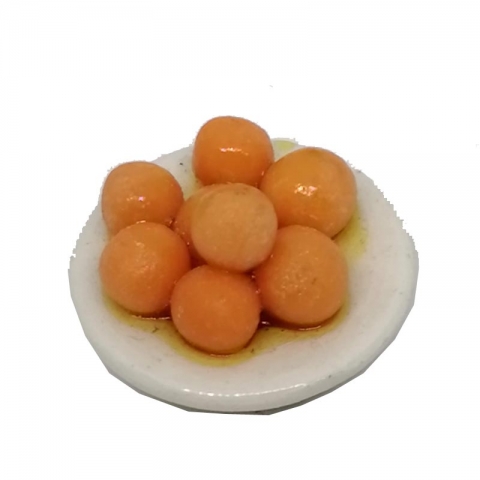 Plato Modelo C: Naranjas . Medidas Plato Blanco 4 mm altura y 2.2 cm Ø .