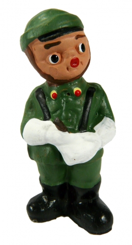 Militar con Chelo. Modelado en barro por Alborox en 5 cm. Foto orientativa debido al carácter artesanal de la misma.