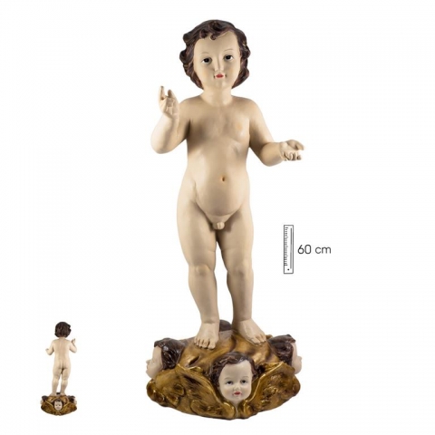Niño Jesús base ángeles 60cm en resina policromada. Diseño de Giordano di Ponzano.