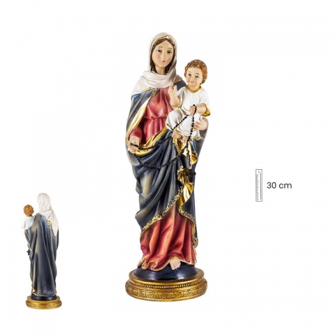 Virgen del Rosario en 22cm en resina policromada. Diseño de Giordano di Ponzano.