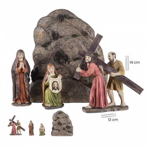 Via Crucis con Veronica. Altura muro 14cm. Figuras 12cm.Diseño de Giordano di Ponzano. Material: Resina policromada