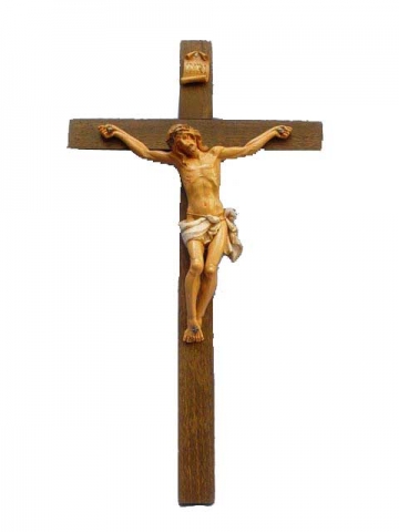 Crucifix, wood style. Figure in resin, 22 x 38 cms.