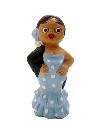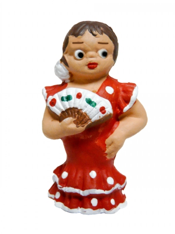 Gitana con abanico en 5 cm de barro. Foto Orientativa ya que los colores pueden cambiar. Barro granadino.
