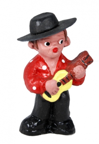 Gypsy playing guitar with Cordoban hat made of 5 cm clay. Photo for guidance as colours may change. Clay from Granada.