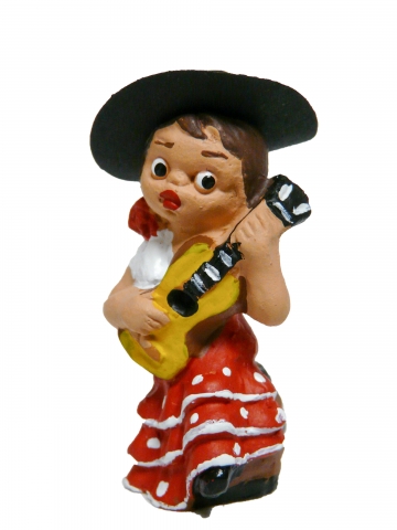 Gypsy woman playing guitar with hat made of 5 cm of clay. Photo for guidance as colours may change. Clay from Granada.