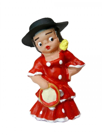 Gitana tocando la pandereta con sombrero en 5 cm de barro. Foto Orientativa ya que los colores pueden cambiar. Barro granadino.