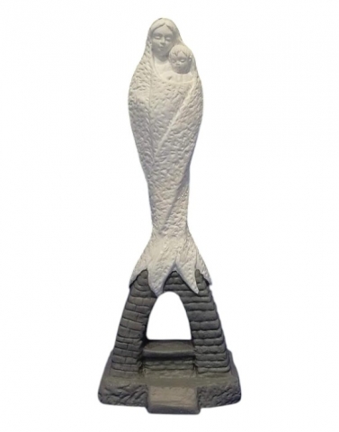 Virgin of the Snow of 22 cm in clay. Grenadian muds. Base in stone. Size of the base: 9 x 7.5 cm.