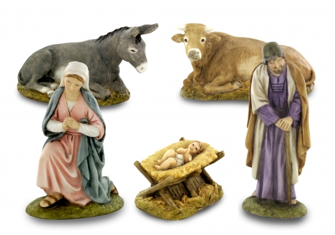 Nacimiento con base en resina policromada de 10 cm. Pieza modelada por Martino Landi.