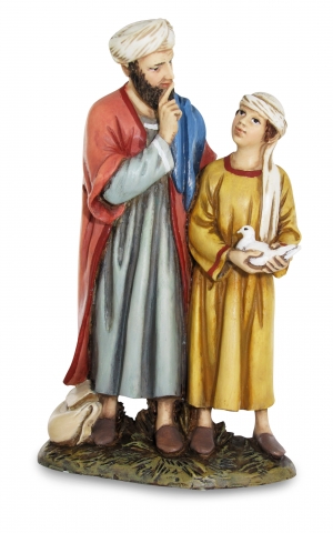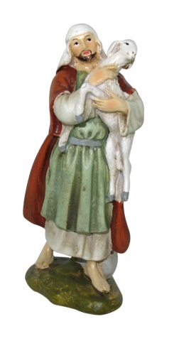 Man with child with lamb made in polychrome resin for figures of 10 cm. Piece modeled by Martino Landi.