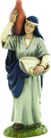 Pastora con cantaro y base en resina policromada de 10 cm. Pieza modelada por Martino Landi.