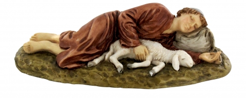 Sleeper shepherd made in polychrome resin for figures of 10 cm. Piece modeled by Martino Landi.