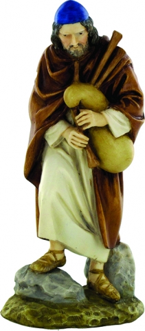 Shepherd with bagpipes made in polychrome resin for figures of 10 cm. Piece modeled by Martino Landi.