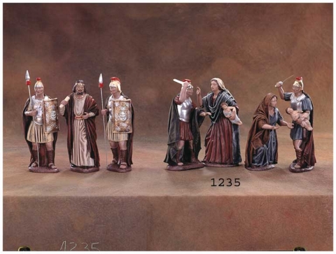 Grupo degollacion 7 piezas en barro policromada . Diseño de Belenes Galán.Disponible en varias medidas.