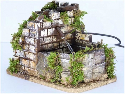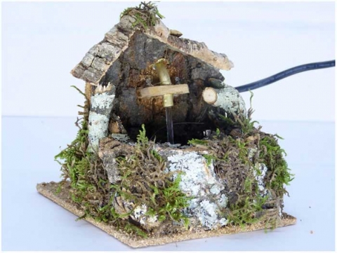 Fuente rústica con bomba agua . Medidas:12x17x12 cm en corcho policromado de Belenes Galán .
