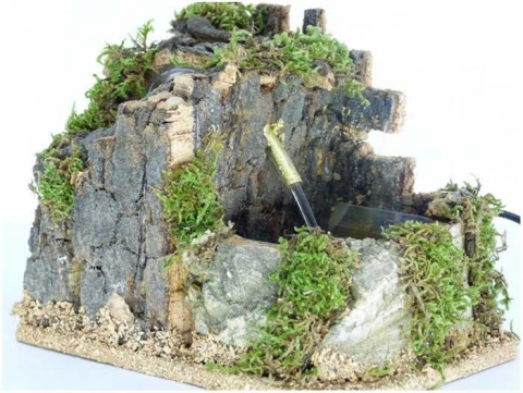 Rustic fountain with water pump. Measurements: 12x17x12 cm in polychrome cork of Belenes Galán.