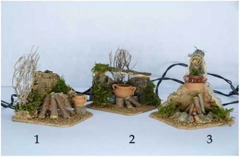 Rustic fires 3 mod. With light . Measures: 10x10x10 cm. Unit price. Specify the chosen number in comments.