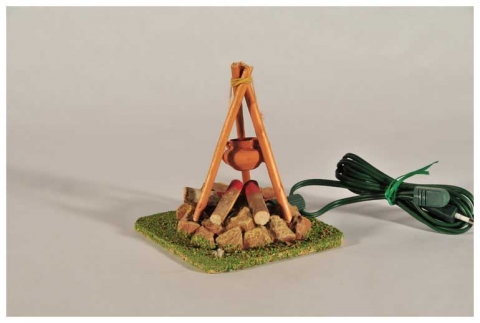 Hoguera tripode con luz nº 084. Medidas: 12x12x14 cm. En corcho, de Belenes Galán.