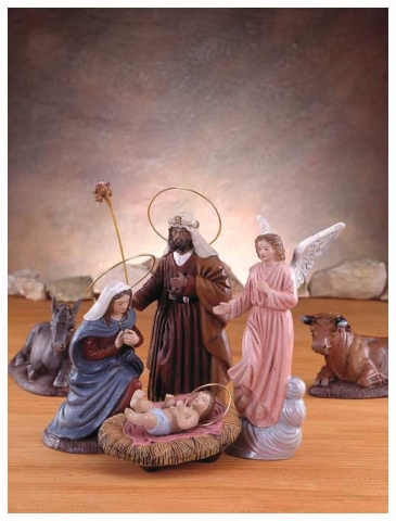 Nacimiento en barro con tela policromada de Belenes GalánDisponible en varios tamaños.