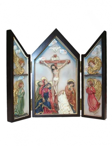 Resin Crucifix triptych 20x22x2 cm.