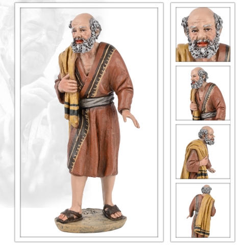 Anciano caminando con manto Pastor 16 cm. Nº 23 diseñado por J. Mayo en terracota y policromía acrílica modelada por el taller artístico Mayo.
