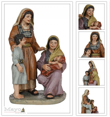 Grupo mujeres con niños en 16 cm. diseñado por J. Mayo en terracota y policromía acrílica modelada por el taller artístico Mayo.
