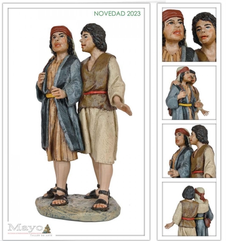 Group of shepherds walking in 16 cm. designed by J. Mayo in ceramic paste and acrylic polychrome modeled by the Mayo artistic workshop.