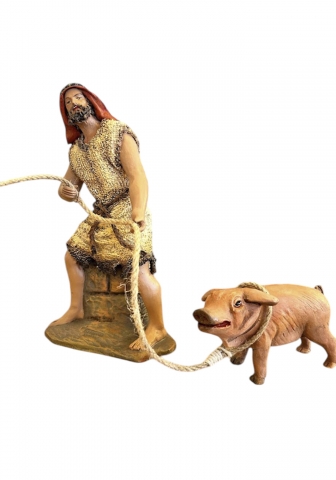Shepherd pulling pig. Serrano design in clay and canvas. Available in various sizes.
