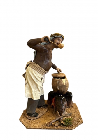 Pastor cocinando. Diseño de Serrano en barro y lienzo. Disponible en varios tamaños.