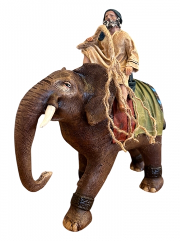 Grupo pastor montando en elefante en varios tamaños. Modelo 853 . Diseño de Serrano en barro.