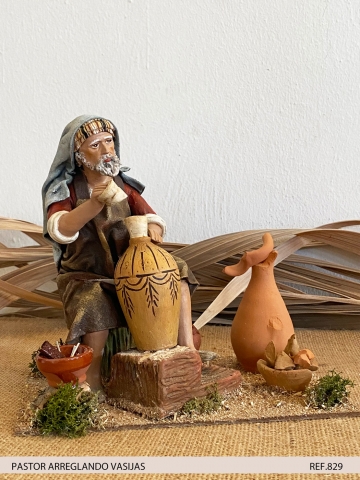 Pastor arreglando vasijas. Modelo 829. Diseño de Serrano en barro y lienzo. Disponible en varios tamaños.
