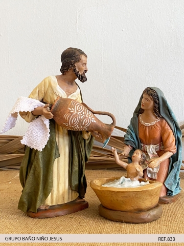 Baby Jesus bath. Model 833. Serrano design in clay and canvas. Available in various sizes.
