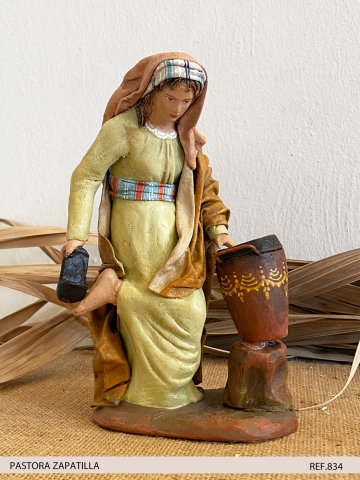 Pastora arreglando zapatillas. Modelo 934. Diseño de Serrano en barro y lienzo. Disponible en varios tamaños.