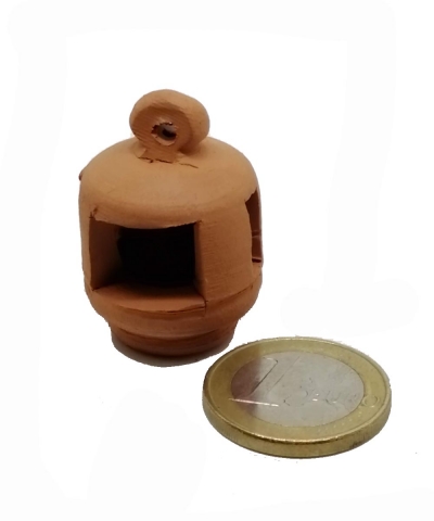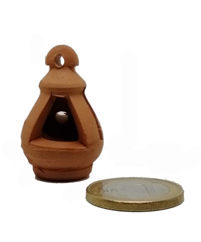 Straight lantern made of clay by hand. Approximate measurements: 3.4 cm. high and 2.3 cm wide. With hole to install a microbulb.
