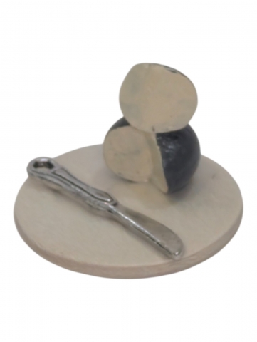 Cheese board with knife on a plate. Measures 2.5 cm diameter and 1.5 cm height.