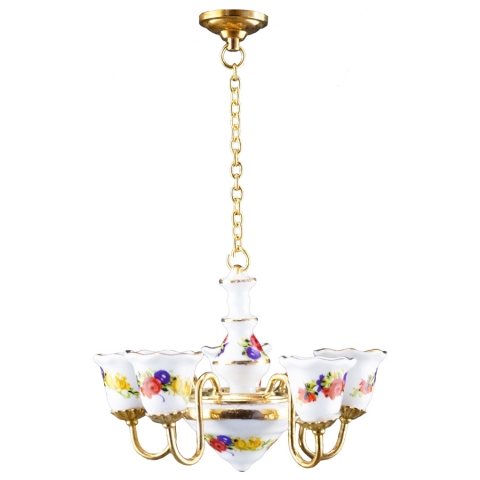 Chandelier lamp in porcelain, without electricity. Scale 1:12. Measure: Weight: 46 g Width: 5.5 cm Length: 8 cm Height: 5 cm