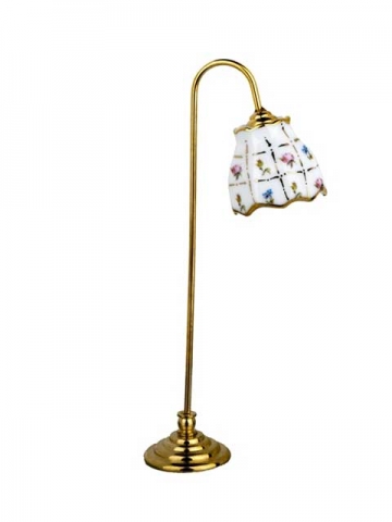 Lampara de pie en porcelana, sin electricidad. Escala 1:12. Medias: Peso: 30 gramo Ancho: 4 cm Largo: 3,5 cm Altura: 11,5 cm