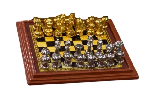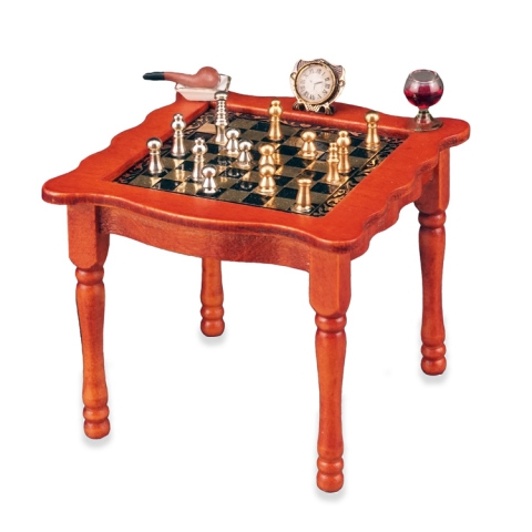 Table with chess. Scale 1:12 cm. Measure: Weight: 42 g Width: 7 cm Length: 7 cm Height: 7.3 cm