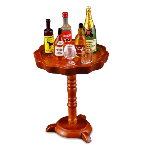 Table with drinks. Scale 1:12 cm Measure: Weight: 17 g Width: 4.6 cm Length: 4.6 cm Height: 8.4 cm