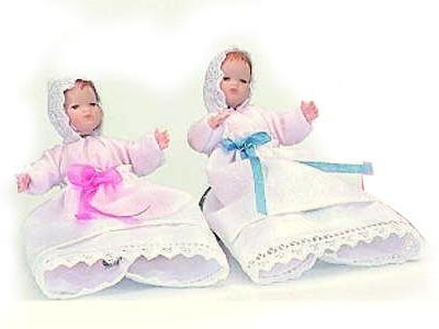 Pareja de bebés. Muñeco flexible con cabeza de porcelana. 5,5 cms. aprox. Fabricado por Caco. Precio por unidad.