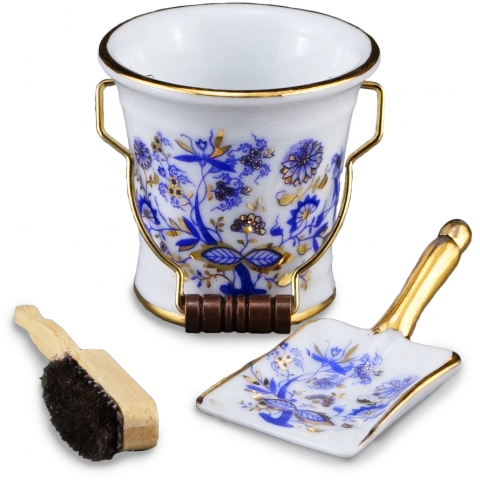 Accesorios de limpieza de chimeneas decorados en azul. Escala 1.12. Medidas: Peso: 46 gramo Ancho: 5.5 cm Largo: 8 cm Altura: 5 cm