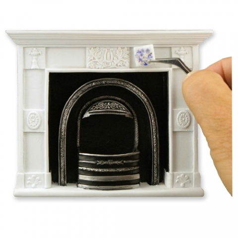 Gray stately style fireplace. Height 9.4cm Scale 1:12.