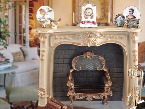 Chimenea beige decorada 9 cm. Escala 1:12.