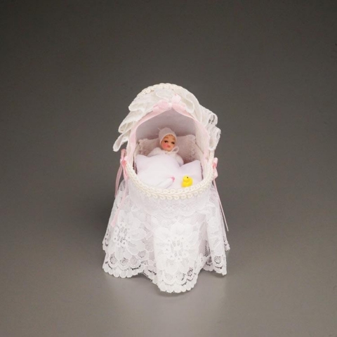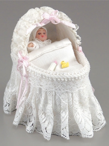 Cuna de bebé. Escala 1:12 Código: 1.776/5 Peso: 54 gramo Ancho: 5.8 cm Longitud: 8.5 cm Altura: 10 cm