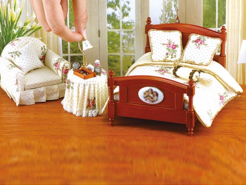 Wooden bed. 1.:12 scale. SKU: 1.829/0 Weight: 100 gr Width: 11.5cm Length: 17cm Height: 10cm