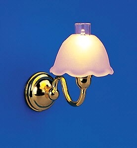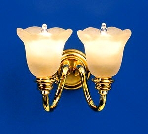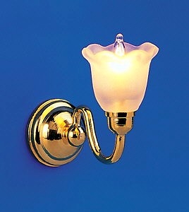 Single wall Lamp, Gaslight large frosted shades. Gold-plated.
