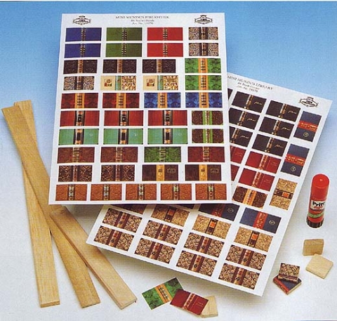 Kits de montaje Las Encuadernaciones del Libro clásicas. El juego contiene 2 hojas con 84 libro de varios tamaños, en madera de balsa tiras para 4 mm, 6 mm y 8 mm y un PRITT el palo adhesivo.