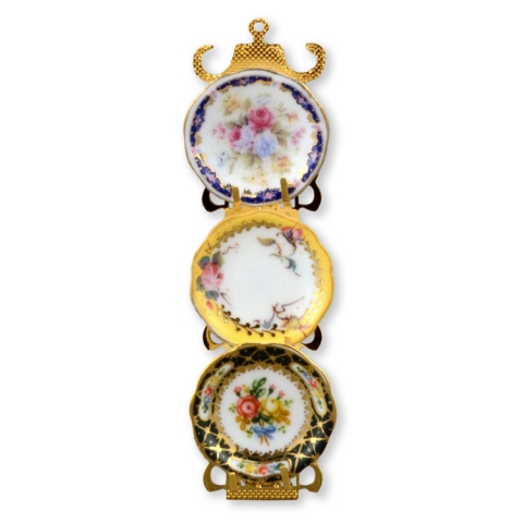 Porcelain decoration plates from the Reutter brand. Scale 1:12. Measure: Weight: 18 g Width: 4 cm Length: 5.5 cm Height: 3.5 cm