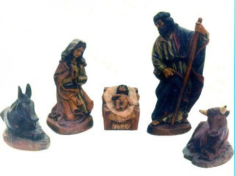 Nacimiento de 21 cms. en resina. Policromado antiguo.